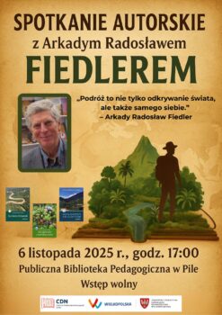 Arkady Radosław Fiedler wyrusza w kolejną podróż — tym razem do nas! Zapraszamy na spotkanie z autorem, który z pasją opowiada o odkrywaniu świata, ludziach i naturze.