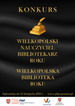 Publiczna Biblioteka Pedagogiczna w Poznaniu serdecznie zaprasza do udziału w trzeciej edycji konkursów o tytuł: “Wielkopolska Biblioteka Roku” oraz “Wielkopolski Nauczyciel Bibliotekarz Roku”. Celem konkursów jest docenienie wielkopolskich bibliotek szkolnych i pedagogicznych oraz uhonorowanie wielkopolskich nauczycieli bibliotekarzy posiadających szczególne osiągnięcia oraz czynnie angażujących się w rozwój szkoły lub biblioteki. Termin złożenia formularzy zgłoszeniowych upływa 21 listopada 2025 roku, natomiast rozstrzygnięcie konkursów nastąpi do 28 listopada br.